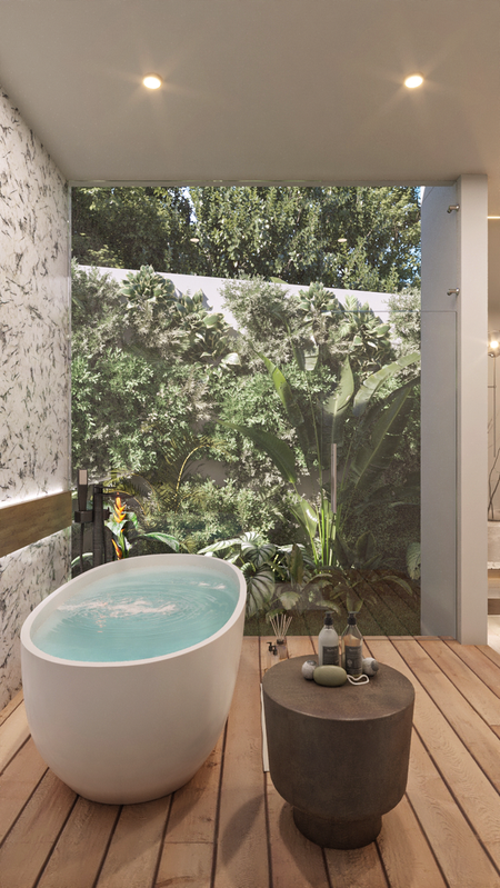 • Iluminación indirecta con mini postes en banquetas, lámparas de piso y de jardín, todo en