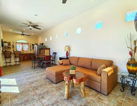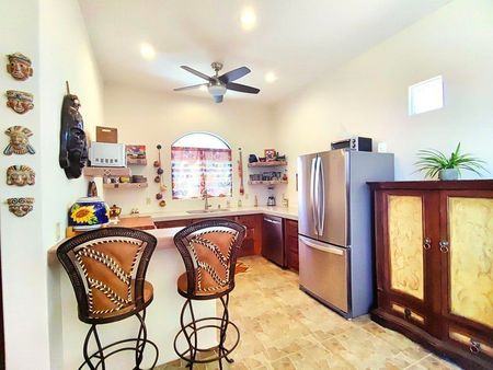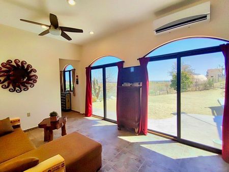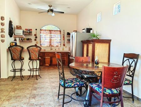 ¡Bienvenidos a Casa Paraíso Escondido! Una hermosa casa en Los Barriles que ofrece la combinación perfecta de comodidad, conveniencia y una impresionante belleza natural. Ya sea que estés buscando una casa de vacaciones o una residencia para todo el año, esta propiedad seguramente será un lugar ideal. Una de las características más destacadas de esta casa son sus vistas al océano y a las montañas, que se pueden disfrutar desde el interior de la casa, el patio exterior y desde la hermosa palapa en la azotea, el lugar perfecto para relajarse mientras contemplas las vistas panorámicas de las montañas y el mar circundante. Esta acogedora casa cuenta con dos habitaciones, un baño bien equipado con una bañera y un espacio de estar cómodo. La cocina está totalmente equipada con electrodomésticos modernos y mucho espacio en el mostrador, lo que facilita la preparación de comidas y la cocina.