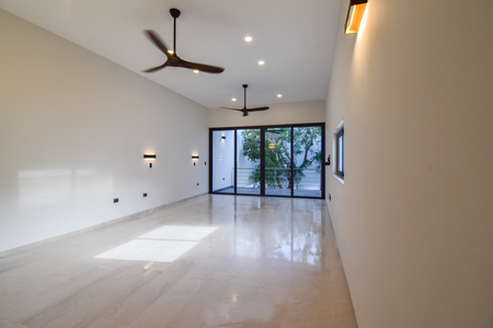- Sala y comedor en concepto abierto y amplio con ventanales a áreas comunes y áreas verdes dentro de la residencia