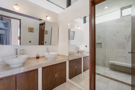 La recámara principal con baño completo, walk-in closet, A/C y sus enormes ventanales panorámicos con una vista espectacular al lago.
