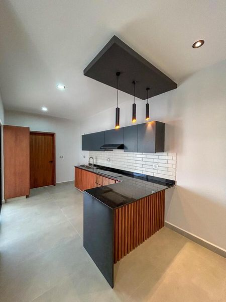 Cocina Integral forrada con placas de granito con barra desayunador