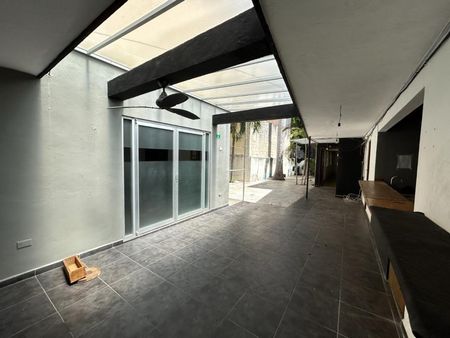 En la parte posterior cuenta con un amplio patio al aire libre, terraza techada, area de barra, un departamento completamente independiente de dos pisos con amplio con baño completo.