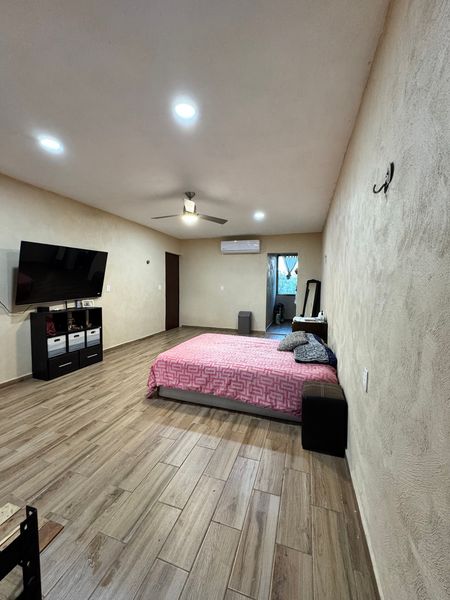 Planta alta: Estudio, terraza cubierta, 1 Recamara con clóset vestidor y baño completo, Recámara principal con clóset vestidor, baño completo con Jacuzzi.