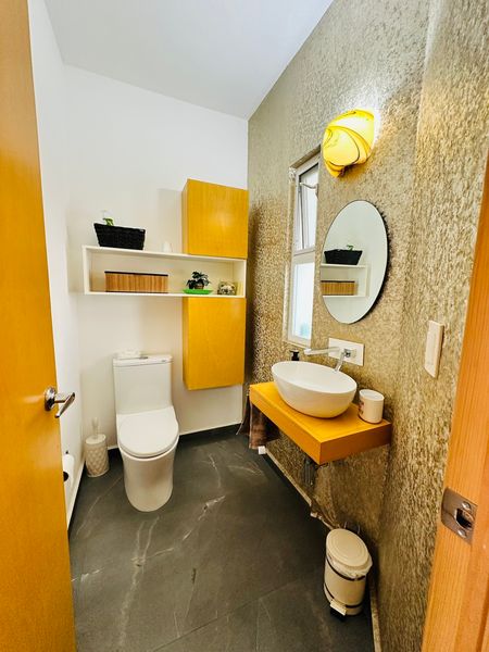 Papeles tapiz en baño de visitas, sala y recámara secundaria