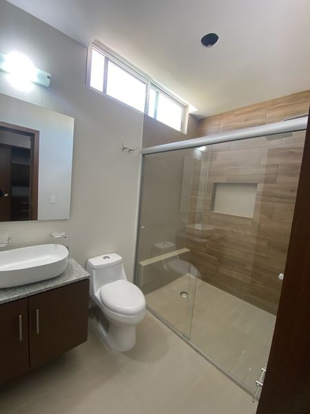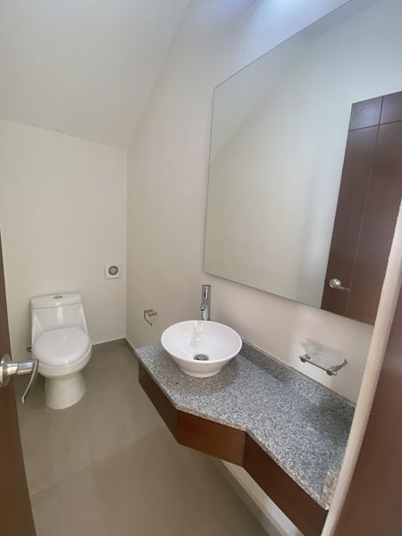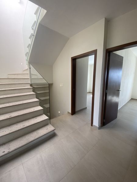Preparación para A/C en recámara principal y 2 recámara , carpintería de madera, piso de porcelanato rectificado 60 por 60 cantera en escaleras