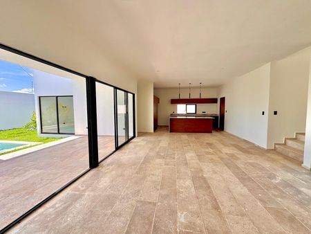 - Sala y comedor con vista a la alberca y al jardín