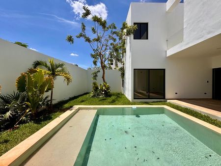 ¡Tu nuevo hogar te espera en el norte! Moderna casa en venta con 1 recámara en planta baja y 3 en planta alta, cocina equipada, alberca, cochera techada y portón. Ubicada a solo 4 km del Periférico de Mérida.