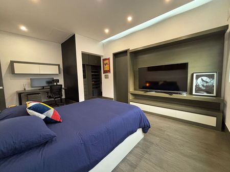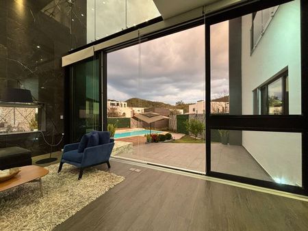 - Primer Nivel: Cochera techada para 3 autos, recibidor, baño de visitas, sala-comedor con muebles BoConcept (doble altura), cocina equipada, lavandería, cuarto de servicio, y un patio con alberca, barra con asador y baños completos.