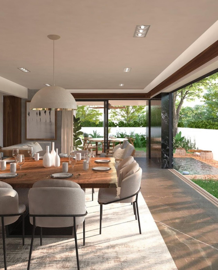- Sala / Comedor corridos con vista panorámica al jardín y salida directa a la terraza