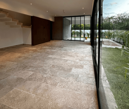 - Pisos interiores de mármol travertino