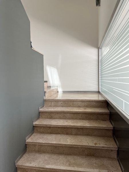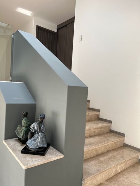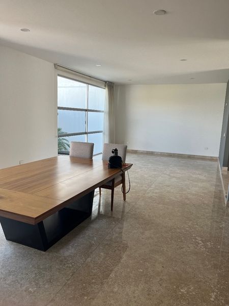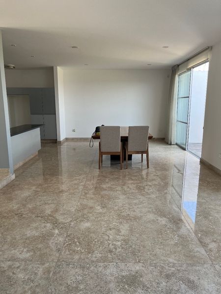 Planta Baja: sala, comedor, y cocina con pisos de marmol travertino y una altura de 3.70 mts.