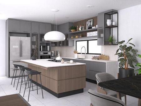 -Cocina abierta a área social diseñada con acabados de lujo, cubierta de cuarzo, listón de cedro.