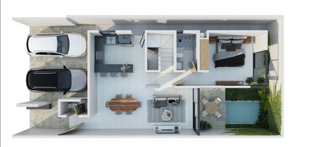 El modelo Starter tiene 165m2 de construcción y una superficie de terreno de 145m2