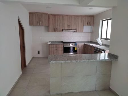 Amplia estancia muy iluminada con sala y comedor en espacios separados. Cocina equipada con recubrimiento de granito y opción de ser abierta (con isla de granito) o cocina cerrada. Cuenta con espacio para lavavajillas empotrado y con alacena.