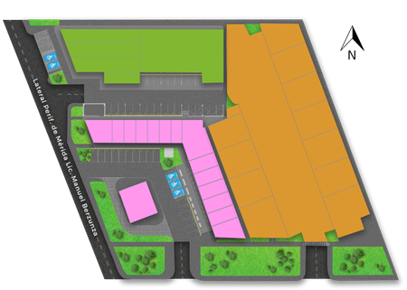 Estacionamiento estructural de 4 niveles con cajones techados.