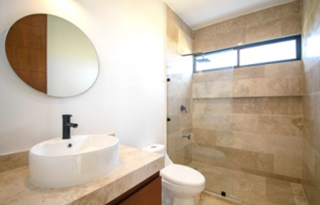 -Baño con mesetas de marmol.