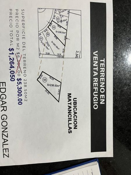 Terreno de 238.5m2 en el refugio Querétaro con las siguientes medidas y colindancias: