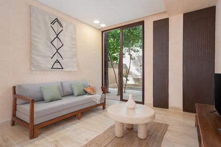 Descubre el equilibrio perfecto entre confort y naturaleza en Condominio Zizal, un espacio privado ideal para disfrutar de Tulum con estilo y tranquilidad. Características del departamento: