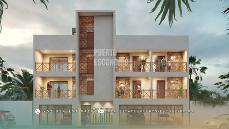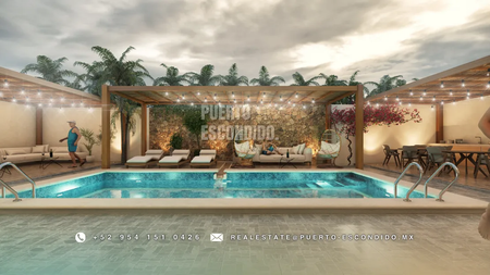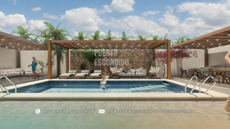 A pocos minutos de Playa La Punta y Zicatela, este desarrollo ofrece cercanía a cafés, mercados, y entretenimiento. Incluye rooftop con vista panorámica, área de asador, gimnasio, alberca y terrazas comunes.