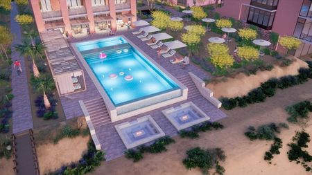 Alberca climatizada y áreas lounge