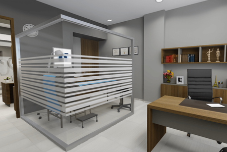 - Muros divisorios entre consultorios de tablaroca con aislamiento acústico