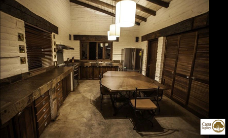 Toda casa, así como las amistades necesitan unos excelentes cimientos, la estructura que soporta la casa es histórica, siendo esta las gualdras del viejo puente del tren de Armería, Colima.