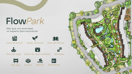 AMENIDADES: Gimnasio, Piscina, espacios Pet Friendly, Lobby, Rooftop privado, Acceso controlado, Área de yoga, Car Spa, Área de picnic, Sendero de jogging, Asoleadores, Área comercial, Estacionamientos de visitas, Área de lectura, Elevadores (2 por torre), Jacuzzi, Aqua paisaje, Jardín sensorial