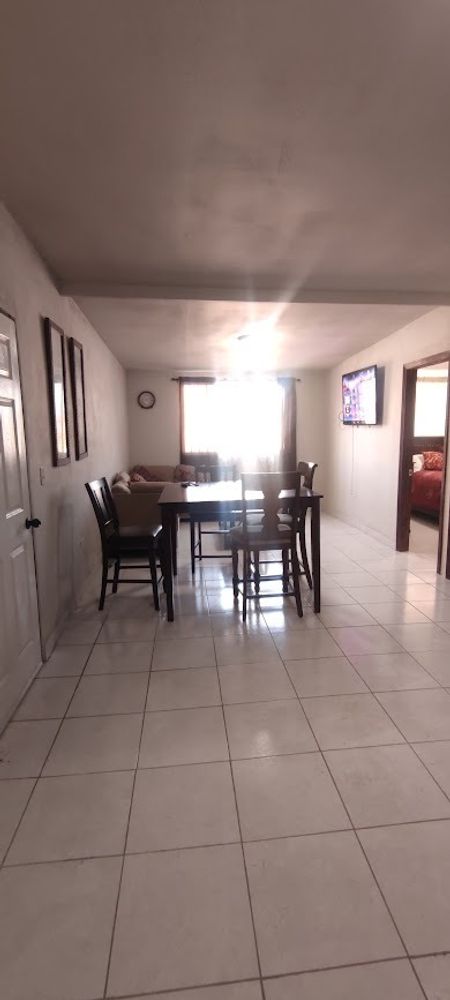 La sala está amueblada con sofás cómodos, una mesa de centro y una televisión de pantalla plana, mientras que el comedor tiene una mesa y sillas. Cuenta con baño completo y espacioso, cochera para auto con control, área común de lavado. El costo de la renta es de $12,000 pesos (incluye agua,gas, e internet).