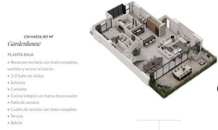 - 276-307m2: 3 recámaras y 3 1/2 baños