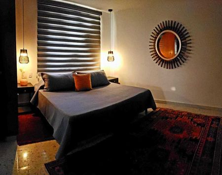 - Dormitorios acogedores: Dos recámaras con iluminación cálida y detalles en madera que crean un ambiente relajante.