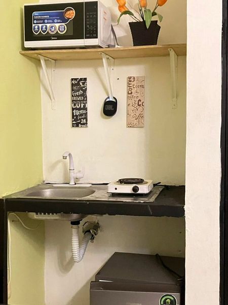 Cuenta con una habitación con cama matrimonial, clóset y aire acondicionado, un baño completo, cocina equipada, comedor para cuatro personas y sala con pantalla de 32 pulgadas.