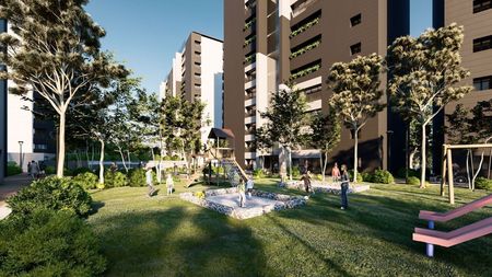 Cuenta con área de juegos infantiles, área de asadores, Business Center, sala de juntas, Walking trail, áreas verdes comunes, etc.