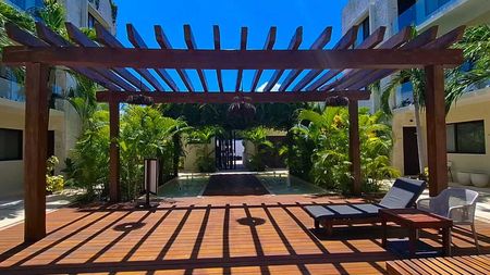 condominio con area de asoleadero con enorme alberca.