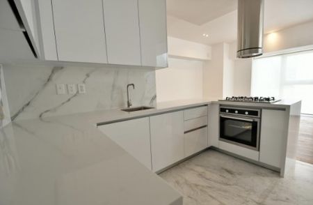 Amplia sala y comedor. Cocina abierta y completamente equipada. 3 recamaras, 2 baños completos. Cuarto de servicio. Bodega en terraza. 2 Cajones de estacionamiento independientes.