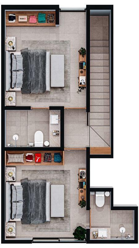 Planta alta: Habitacion Principal - Baño principal - Habitacion Secundaria - Baño secundario.