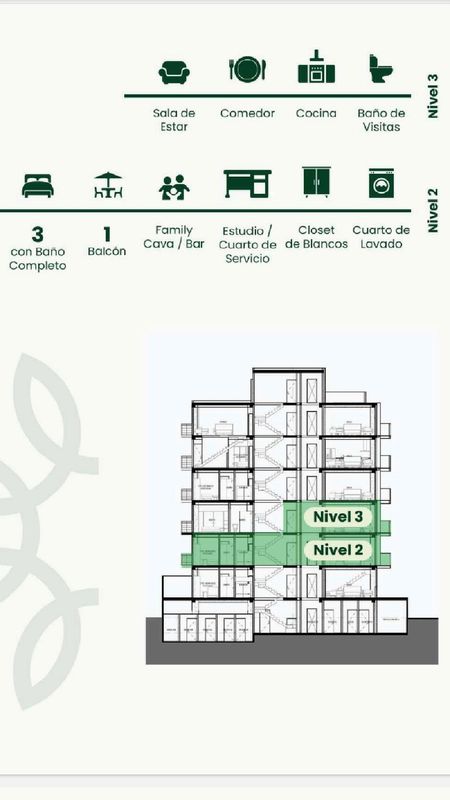 Los departamentos están diseñados en **dos niveles** , creando una separación entre las zonas privadas y las sociales para mayor comodidad y privacidad