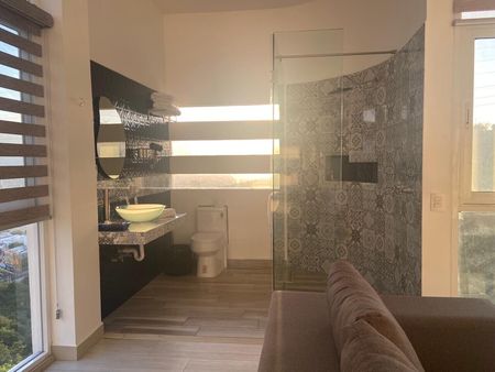 Departamento completamente amueblado y equipado, 80m2, 1 recamara, sala comedor y cocina, 2 baños completos. Gran ubicacion, acceso inmediato a principales avenidas, centros comerciales, hospitales y universidades. Colonia privada. Servicios gas, agua, internet y caseta de vigilancia incluidos. No mascotas, si estudiantes.