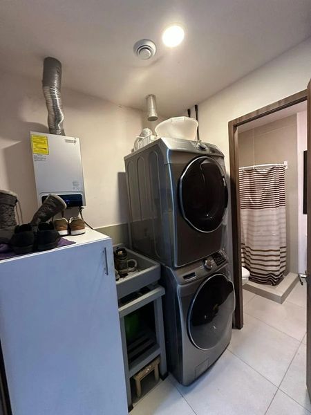 Laundry area + service room with bathroom