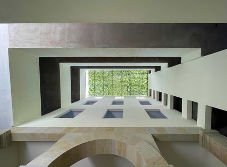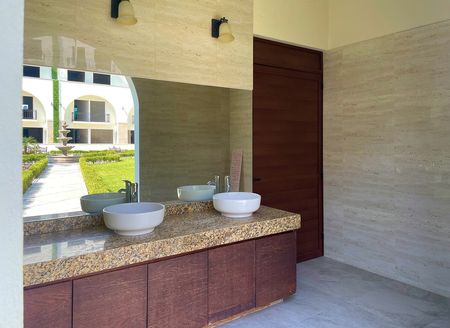 El conjunto cuenta con una explanada amplia con alberca y baños comunes. De la explanada se accede a la recepción y al Lobby, de donde se puede llegar al departamento por escaleras o elevador.