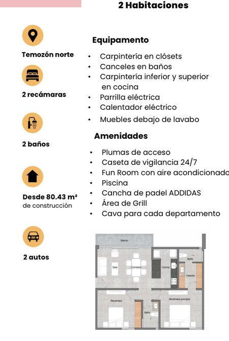 DEPARTAMENTO EN MERIDA, TEMOZON EN VENTA MODELO 2 HABITACIONES