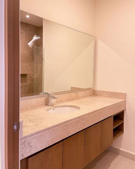 -1 baño con encimera de mármol travertino