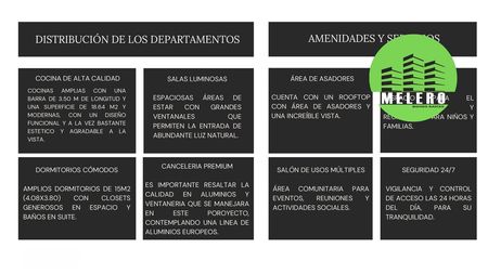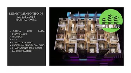 7 niveles con elevador, parte abajo estacionamiento (un cajón por departamento). Amenidades: asadores, salón de eventos y gym. Previa cita. MV3