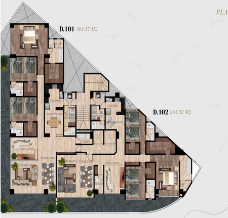 ¡Bienvenidos a su futuro hogar! Les presentamos este espectacular departamento de doscientos sesenta y uno punto treinta y dos metros cuadrados, que incluye una amplia terraza de veintiocho metros cuadrados , donde podrán disfrutar de una vista inigualable mientras disfrutan de su café matutino o de una cena al aire libre con amigos y familiares.