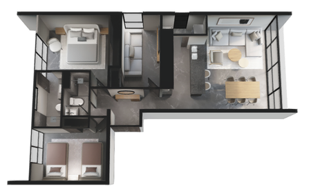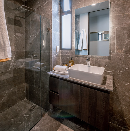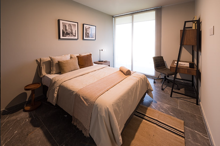 PISO DE MÁRMOL, PREPARACIÓN PARA AIRE ACONDICIONADO, ZOCLO DE MÁRMOL, VENTANAS DE PISO A TECHO, BARRA DE GRANITO EN COCINA, MUROS DE DUCHA CON MÁRMOL DE PISO A TECHO, CANCELES DE CRISTAL TEMPLADO EN BAÑOS, PERSIANAS EN TODOS LOS VENTANALES. AMENIDADES: CHILL POOL TERRACE, GRILL ROOF TOP, LOUNGE ROOF TOP, COWORK ROOF TOP, FIT POOL TERRACE. 3 ROOF TOP CON AMENIDADES PANORÁMICAS EN EL NIVEL 11 DE CADA TORRE. 2 POOL TERRACE CON ALBERCA EN EL NIVEL 1 UBICADAS EN LOS EXTREMOS NORTE Y SUR.