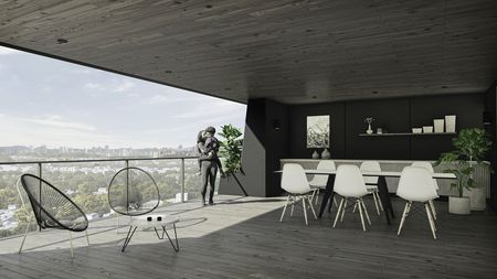 Los departamentos de 90 M2 tienen terrazas privadas techadas, ( desde 10 M2 hasta los 51 M2 )