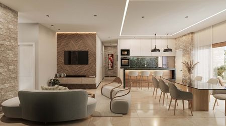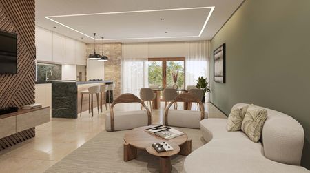 Tres habitaciones, cada una con su baño privado; la principal con vestidor., espaciosa área de sala y comedor, cocina equipada con isla al centro., cuarto de lavado, terraza.