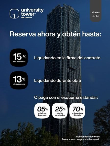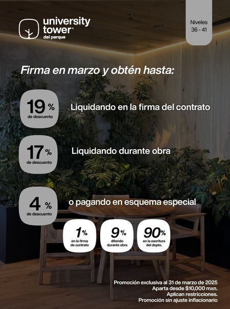 m2 promedios. Precios y disponibilidad a discreción de University Tower y Desarrolladora del Parque S.A. de C.V.