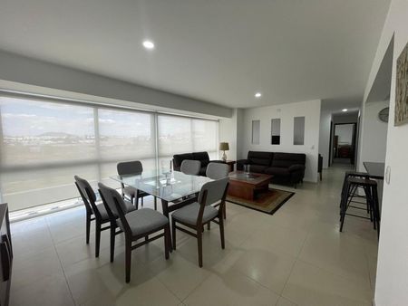 ¡Este increíble departamento amueblado en el piso 12 te ofrece comodidad, estilo y acceso a una variedad de amenidades exclusivas! Con 118 m² de espacio perfectamente distribuidos, es ideal para quienes buscan una experiencia de vida única. Espacioso y Moderno: La sala y comedor están amueblados con un estilo elegante y funcional, perfectos para disfrutar de momentos especiales.