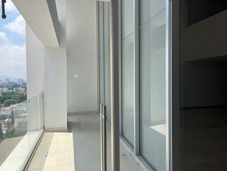 Sala y comedor a doble altura con salida a balcón y abundante luz natural. Vista hacia Diagonal San Jorge y Av. Vallarta.