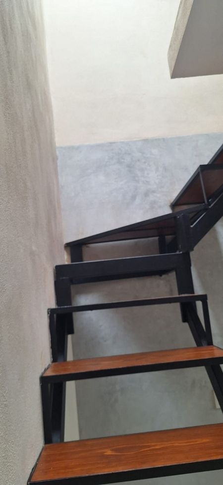 Cuenta con patio de servicio y una bodega con preparación para un medio baño, cisterna compartida y gas estacionario.